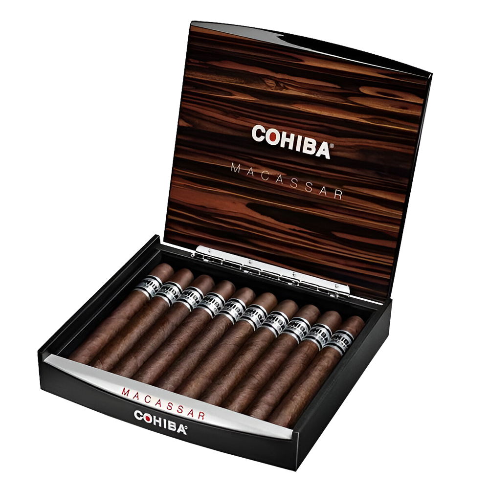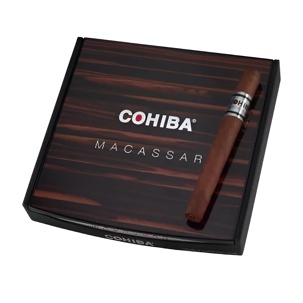 Distant from even the most primitive modes of transportation, Indonesian Macassar is arguably the most difficult ebony in the world to procure and one of the worlds most beautiful and exotic woods. In a fitting tribute to this extraordinary work of nature, the artisans of Cohiba have created Cohiba Macassar, a new collection that lends itself to extravagant smoking occasions as readily as it does to life's most treasured moments. Cohiba Macassar brings forth nuanced notes of wood and spice. The flavor is distinctive and unmistakable, bearing subtle references to other blends in the Cohiba portfolio.