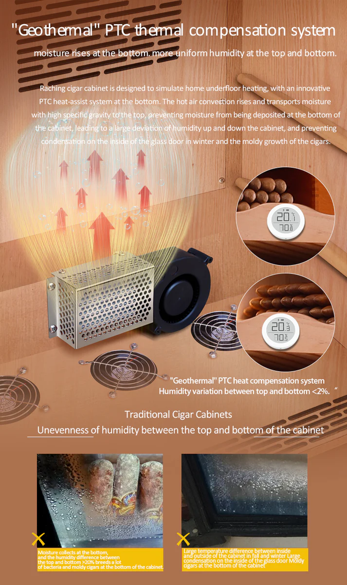 Raching C-Series COH180A Climate Control 650-Cigar Electric Humidor Details:
