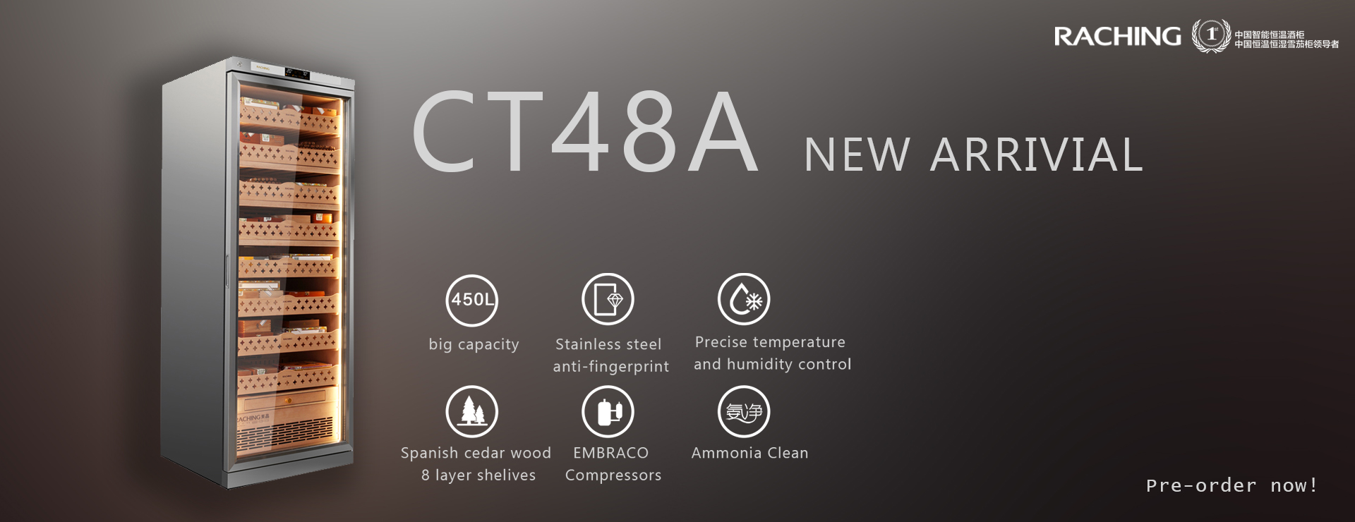 Raching Stainless Steel Series CT48A Climate Control 4000-Cigar Electric Humidor Details: