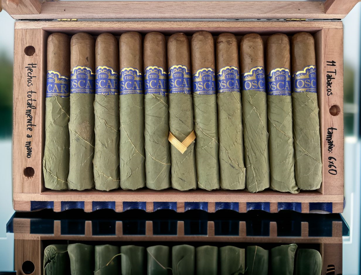 The Oscar by Oscar Valladares has become an instant hit not only because of its excellent construction, savory flavor profile and appealing price, but because instead of using cellophane cigar wrapping, the cigar was wrapped in a green candela leaf. This has become a signature of Oscar Valladares’ unique packaging style. The candela leaf is not to be smoked, but rather its used as an outer sleeve to protect the cigars from damage.